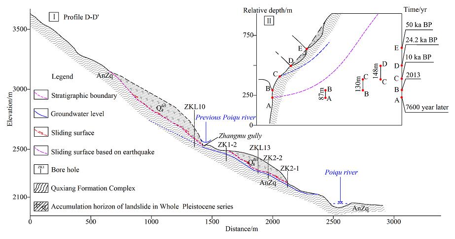 中科院成都山地災害與環(huán)境研究所陳寧生研究團隊通過詳細的工程地質調查、ESR測年和流量估算及數(shù)值模擬,揭示了波曲及其支溝下切的時空差異,并基于巖質滑坡與河流下切的關系,分析了樟木滑坡的演化趨勢。河流的下切速率受流量的控制,波曲的平均下切速率為11.5±1.2 mm/a,近一萬年來下切速率較快,達13.0±1.3 mm/a。按該下切速率推算7600年后波曲下切可能切基巖導致樟木古滑坡再次復活。