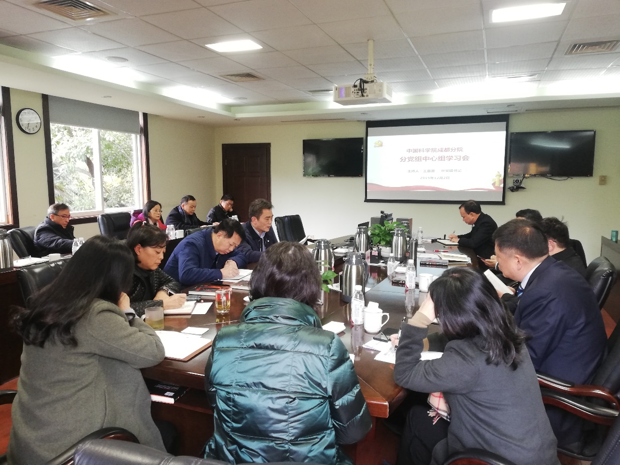 12月2日,成都分院分黨組召開理論學習中心組擴大會。成都分院分黨組書記、副院長王嘉圖主持會議,分黨組成員、副院長陳鋒,分黨組副書記、紀檢組長劉剛君參加學習。